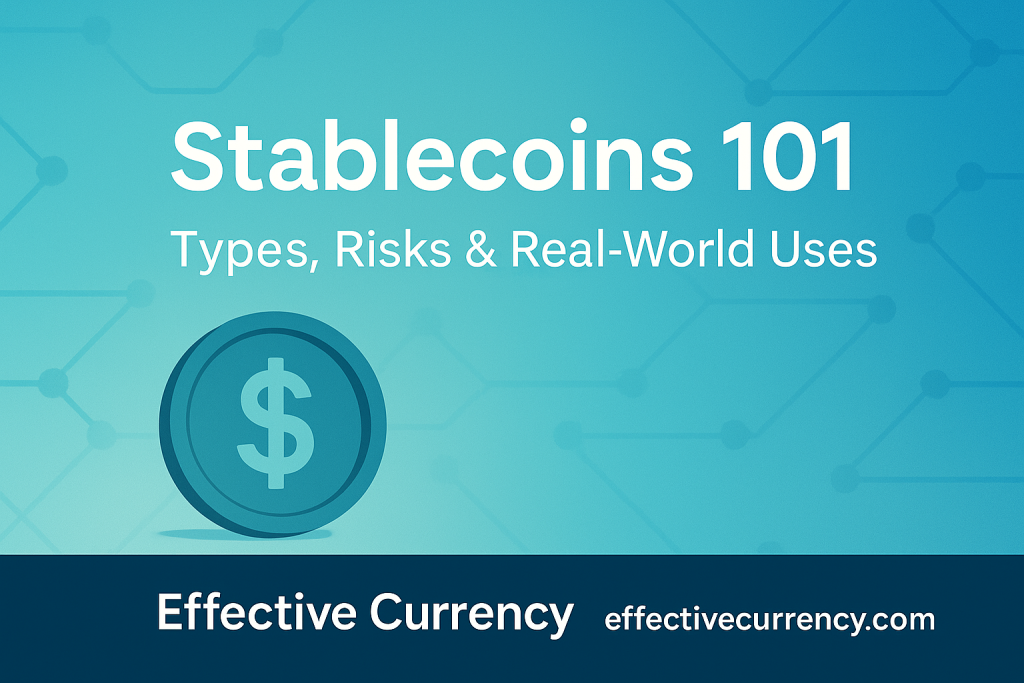 Plain-English stablecoins guide—how they work, main types, key risks (depegs, reserves, smart-contract), and real-world uses for payments, transfers & yield.